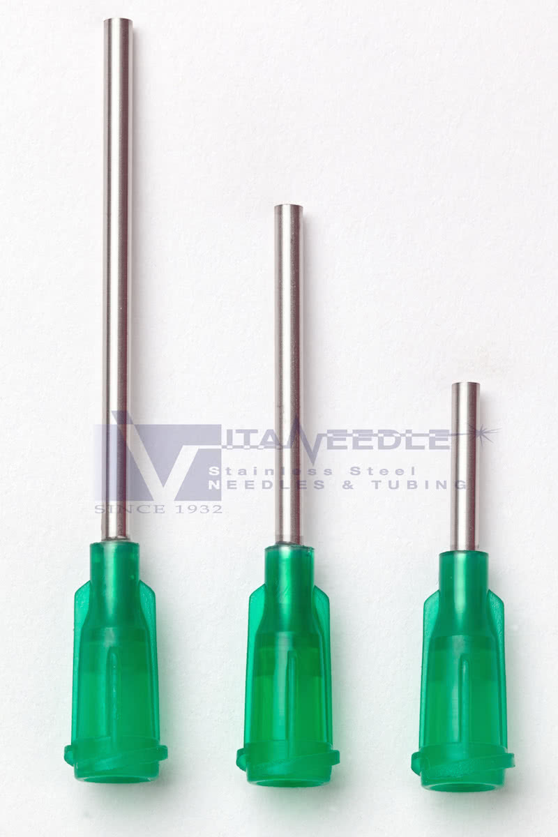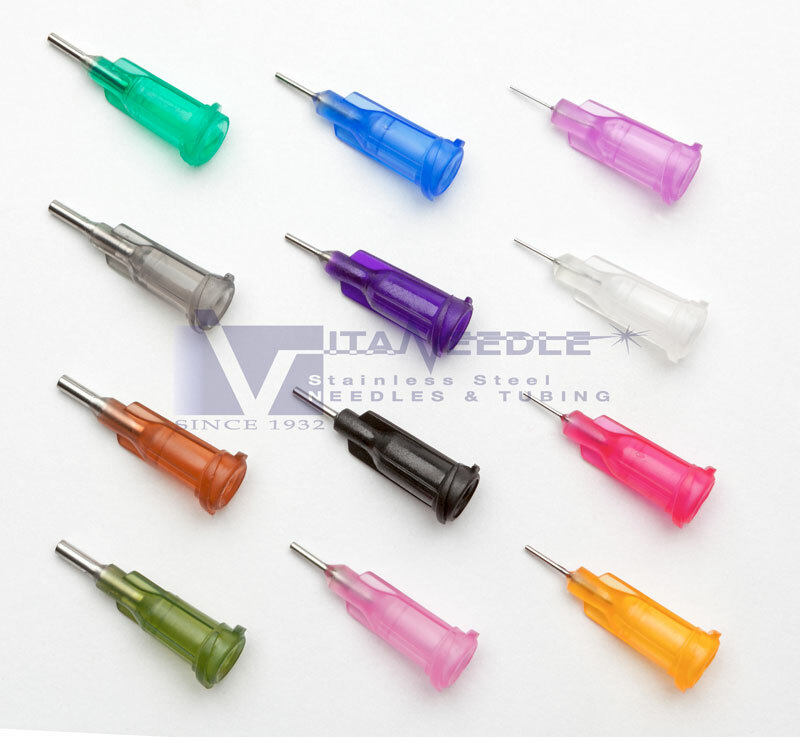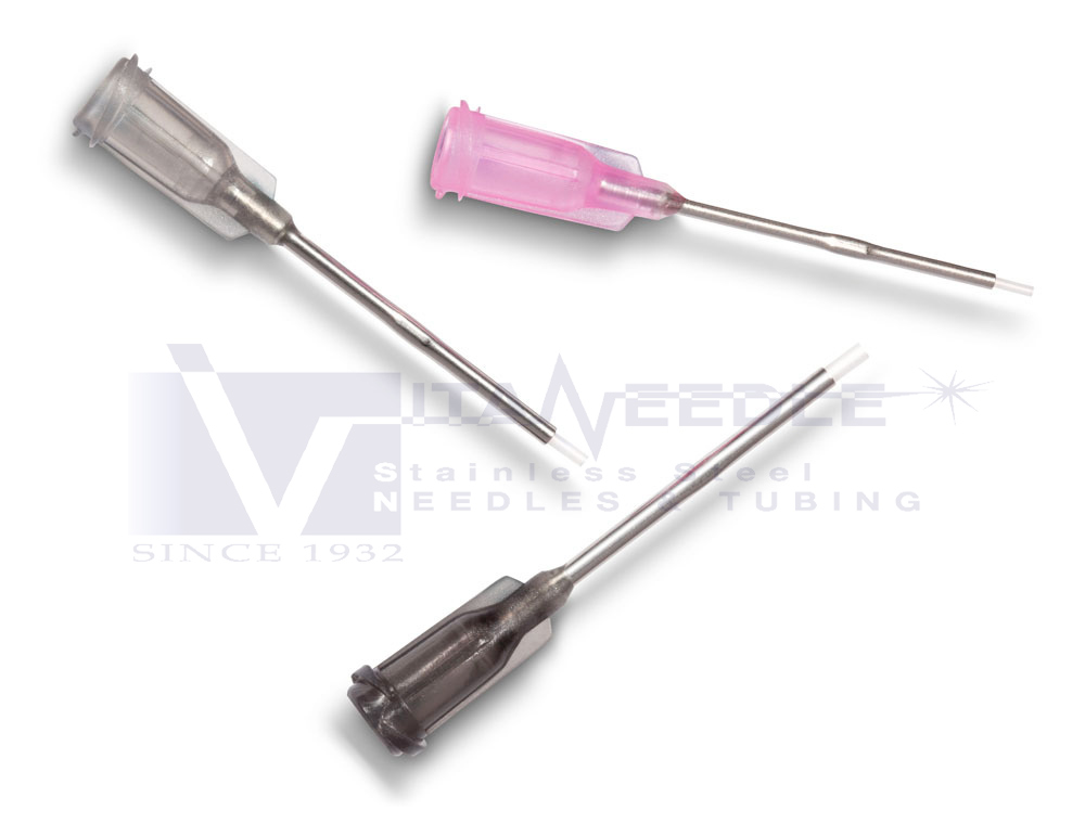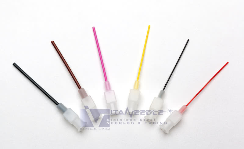 For optimum dispensing control. Standard sizes are 12 RW, 16 RW, 20 RW, 22 RW and 25 RW by 1/2" long and assembled to a standard plated brass luer lock hub. Other sizes and lengths are available on request.