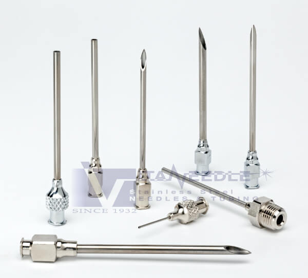 While Vita Needle can manufacture needles with a wide variety of end, tube and hub configurations, these are some of the more commonly sold needle assemblies that we stock for quick delivery and are able to offer at economic prices. All items listed are fabricated with our standard 1170 female luer lock nickel plated brass, ANSI and ISO 594/1 and ISO 80369-7 taper only compliant hub and are either staked or soldered to 304SS tubing that complies with medical and laboratory grade ASTM-A908 specifications.